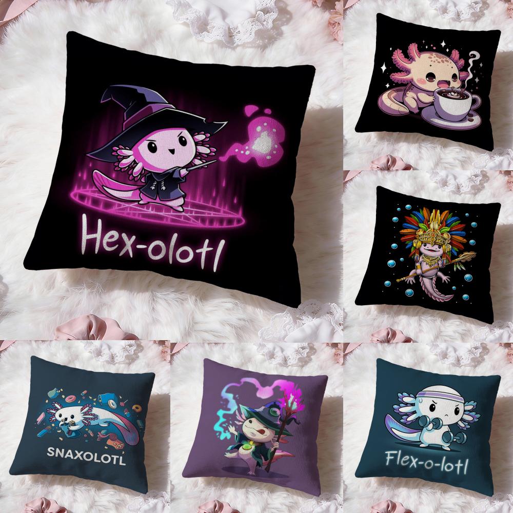 Cute Axolotl Cartoon Cushion Cover Premium Comfort Reversible Pillow Cove -Two In One Design for Any Room & Car Interior