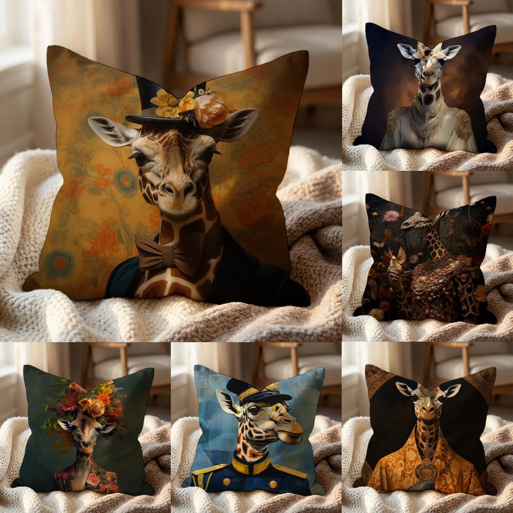 Retro Dressed Up Giraffe THEME Cushion Cover Multi-Scene Pillow Cover for Home & Car - Reversible, Soft & Durable for Daily Use