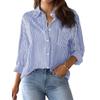 Spring Autumn New Printed Striped Casual Shirts Women Loose Cardigan Top Fashion Long Sleeve Office Blouse Woman Simple Vintage Lapel Pocket Clothes