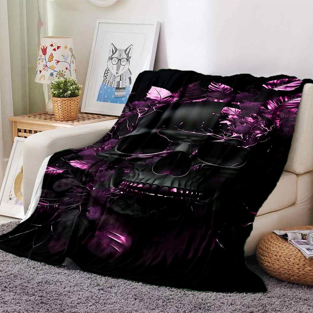 1pc Skull Leaves Throw Blanket Soft Flannel, Cozy All Season Polyester Perfect for Home, Office