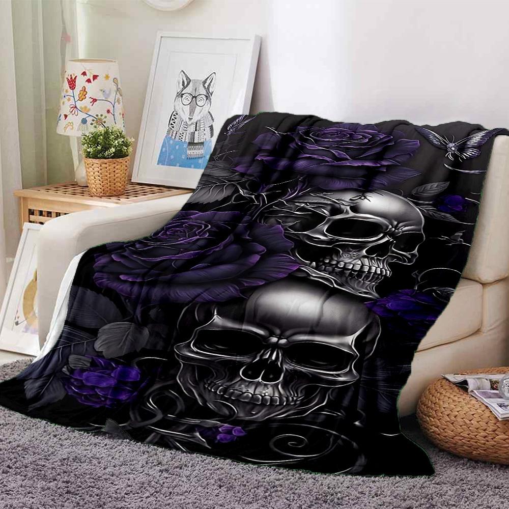 1pc Skull Purple_rose Soft Warm Throw Blanket Nap Blanket For Couch Sofa Office Bed Camping Travel,Comfortable