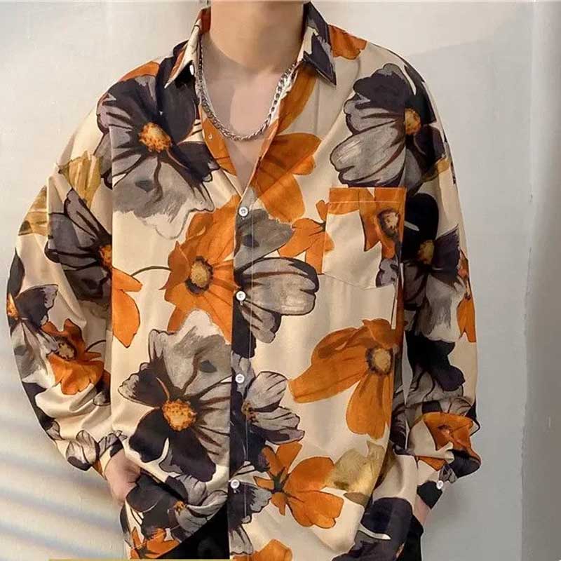 Style Floral Floral All Match Printed Shirt Retro Spring and Autumn New Style Loose Fitting Shirt Long Sleeved Top