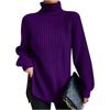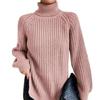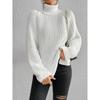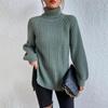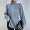 Autumn/Winter Soft Knitwear Fashion Raglan Long Sleeve Turtleneck Split Sweater Casual Warm Solid Mid-length Pullover