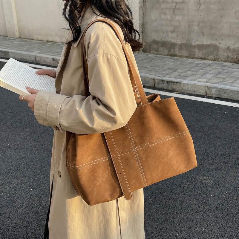 Vintage Suede Tote Bag for Women Large Capacity Casual Shoulder Bag Retro Cross Quilting Soft Hobo Handbag for Daily Commute Work Shopping Travel