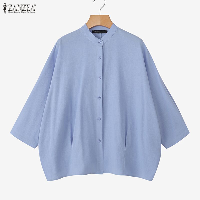 ZANZEA Women Casual Round Neck Solid Color Loose Long Sleeve Cotton Blouse