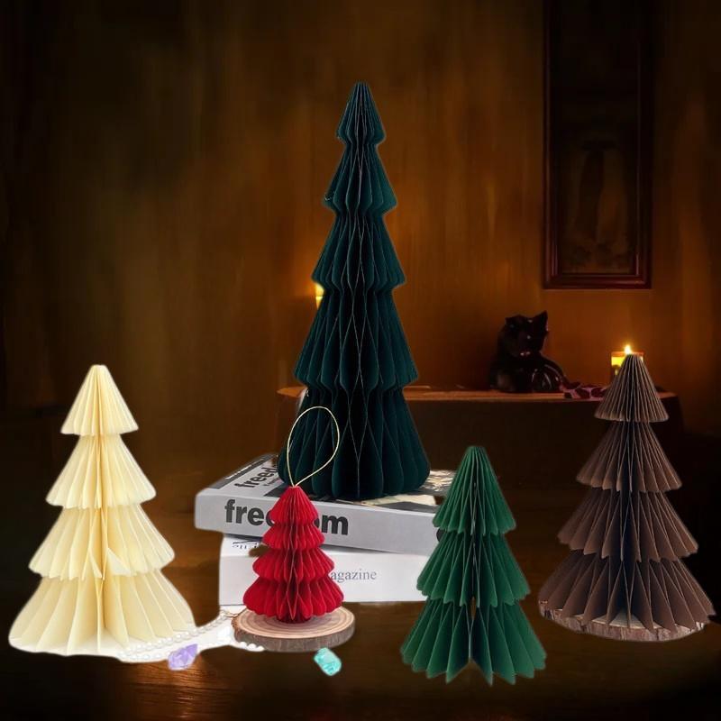Folding Paper Large Christmas Tree Ornament; 3D Honeycomb Ball Xmas Decoration for Desktop & Hanging Navidad Decor