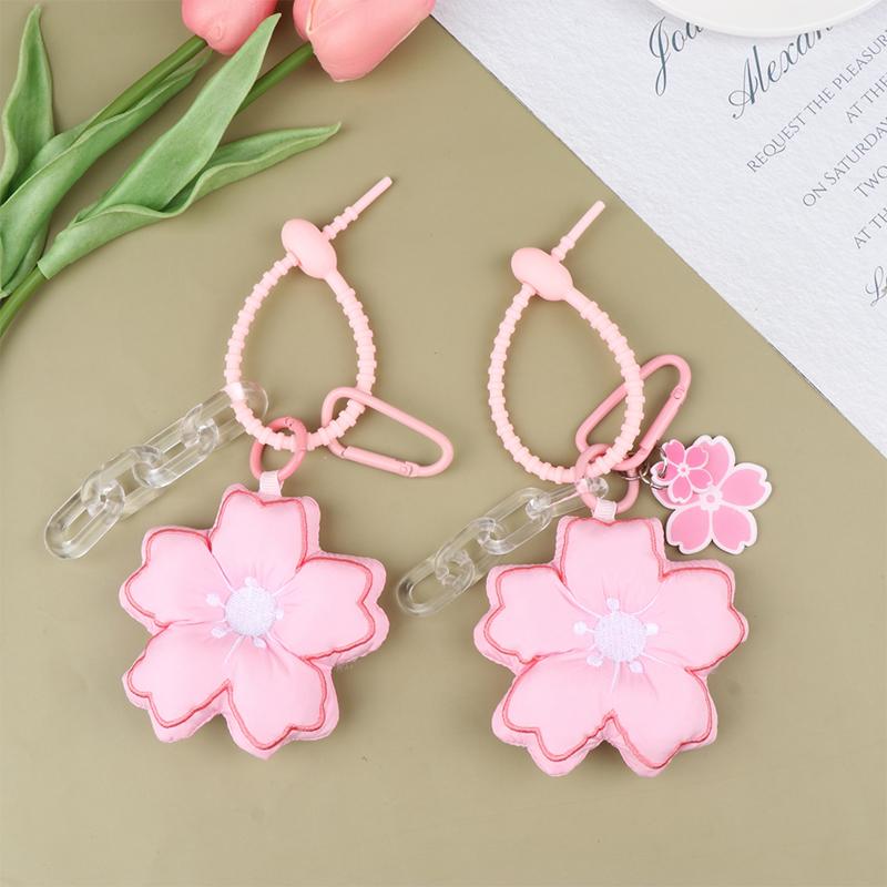 Pink Cherry Blossom Key Chain Fabric Sakura Pendant Cute Flower Key Ring Backpack Charms Car Decoration Bag Accessories
