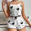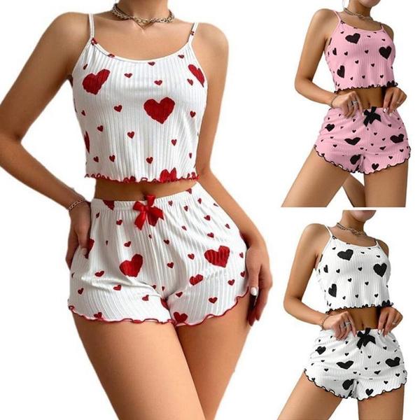 Fashion Women Pajama Sets Love Print Sleeveless Top Shorts 2 Piece Sleepwear Casual Fashion Nightwear Femme Pyjamas Tops Pants Suit