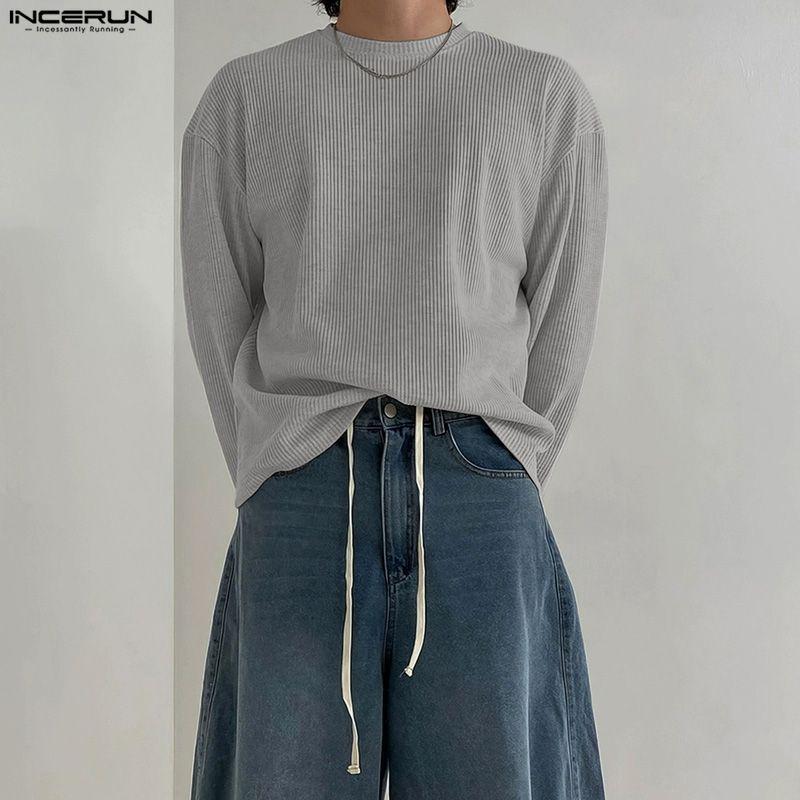 INCERUN Men Round Neck Long Sleeve Texture Casual Tops T-shirts