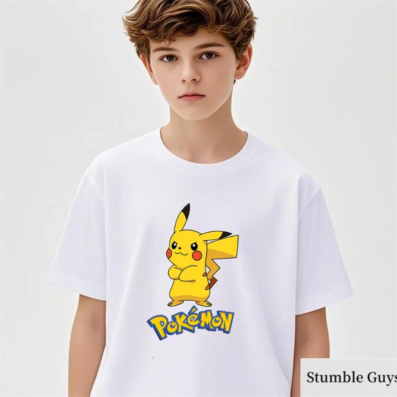 Anime Pokemon T-shirt Kids Cartoon Pikachu Gengar Printed Tshirt Casual Boys Clothes Girls Birthday Gifts Fashion Teen Tops