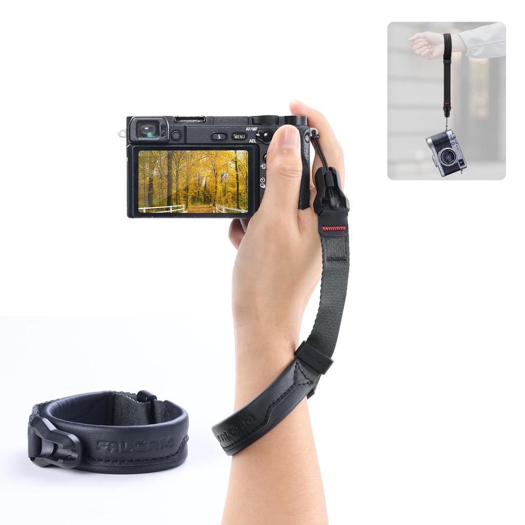 Ulanzi Falcam Wrist Camera Strap, Hand Strap with Maglink Anchor, Magnetic Quick Buckle Strap, Adjustable Length, Secure, Durable, Abrasion-Resistant Nylon and Natural Cowhide Leather, Compatible with DJI, Sony, Canon, Nikon, Fujifilm, and Other Cameras, DSLR and Mirrorless Cameras, V2 BLACK [2025 New Edition]