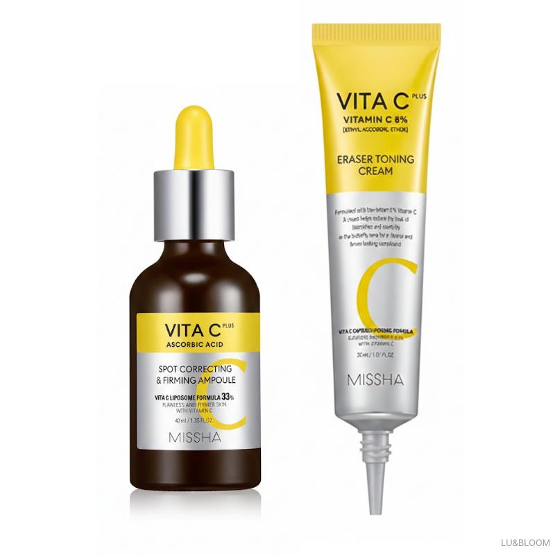 The Missha Vita C Plus Spot Correcting 2-Piece Special Set is a powerful synergy duo designed to fade dark spots and restore skin elasticity. This set features the award-winning Spot Correcting & Firming Ampoule and the Eraser Toning Cream, both powered by stabilized Vita C Liposome Formula. By combining pure Vitamin C with high-performance skincare ingredients like collagen and peptides, this set provides a comprehensive solution for a brighter, firmer, and more transparent complexion.