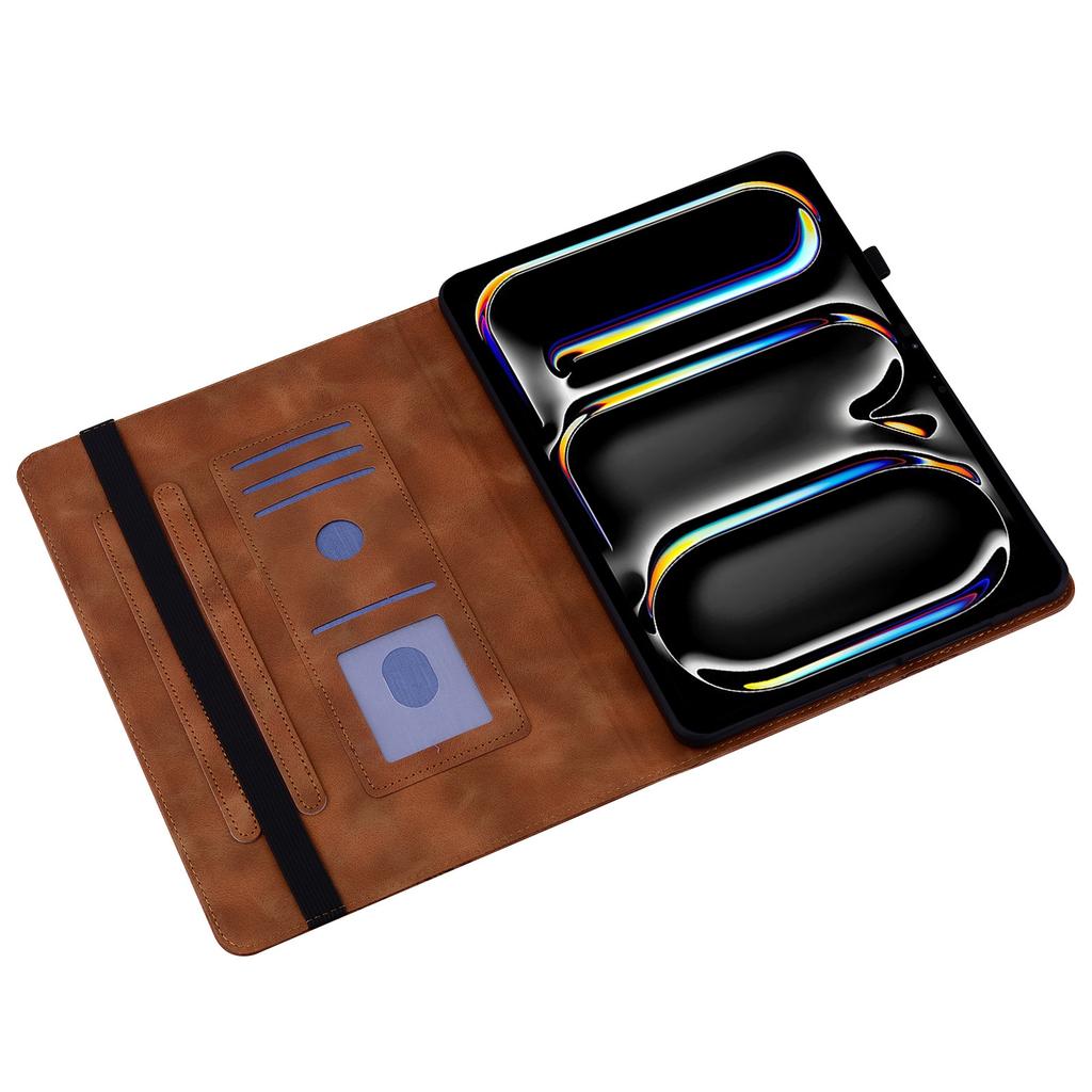 For iPad Pro 13 (2025)/13 (2024) Leather Case Heart Imprint Foldable Stand Card Slot Stylus Holder Tablet Cover