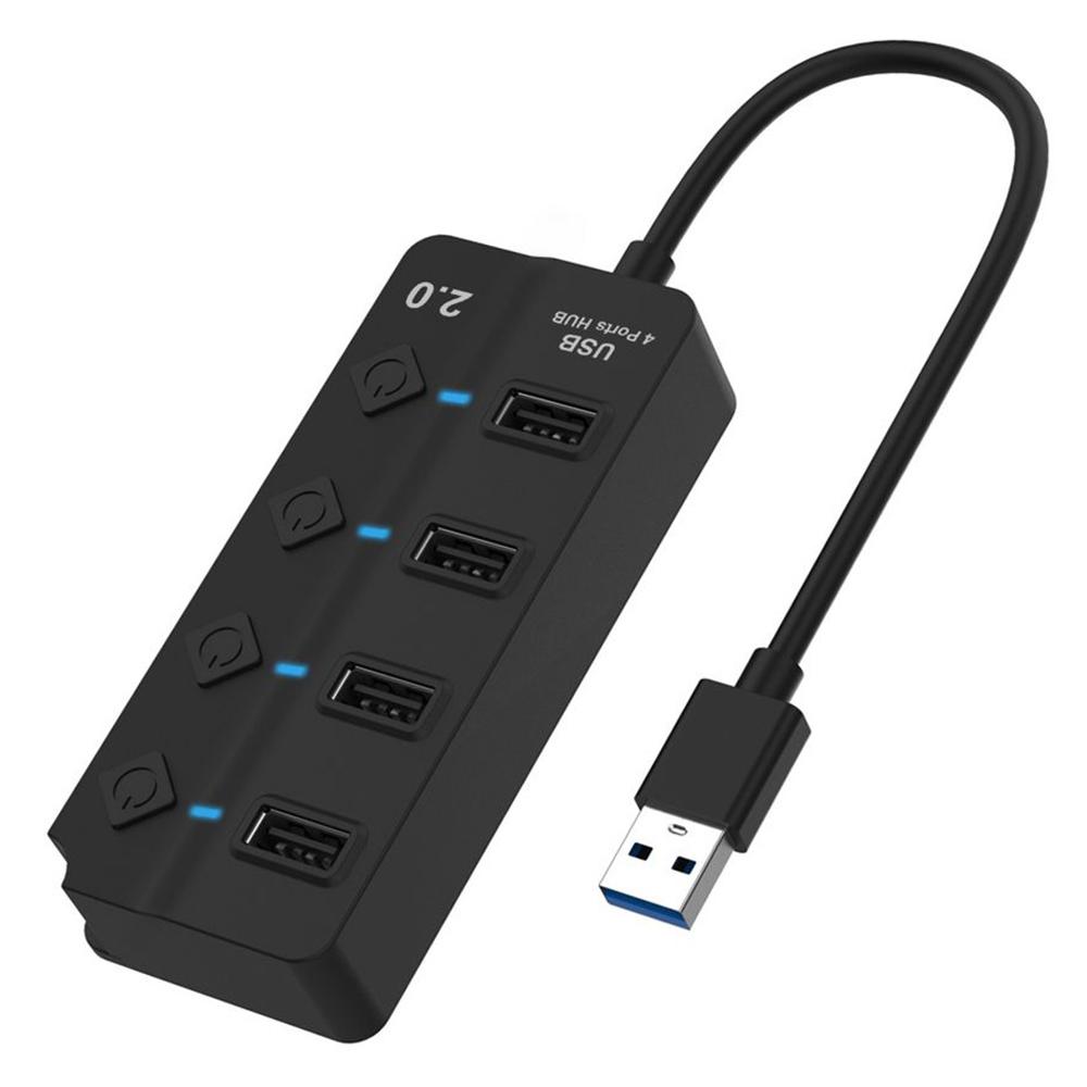 5302 4 In 1 USB 2.0 Hub With Individual Switches Plug and Play 4 Ports Splitter High Speed 480Mbps Data Transfer
