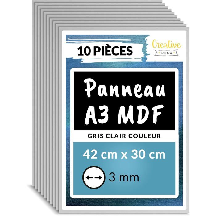 Panneaux MDF - CREATIVE DECO - A3 - Découpe Laser - Gravure - 10 pièces - Gris