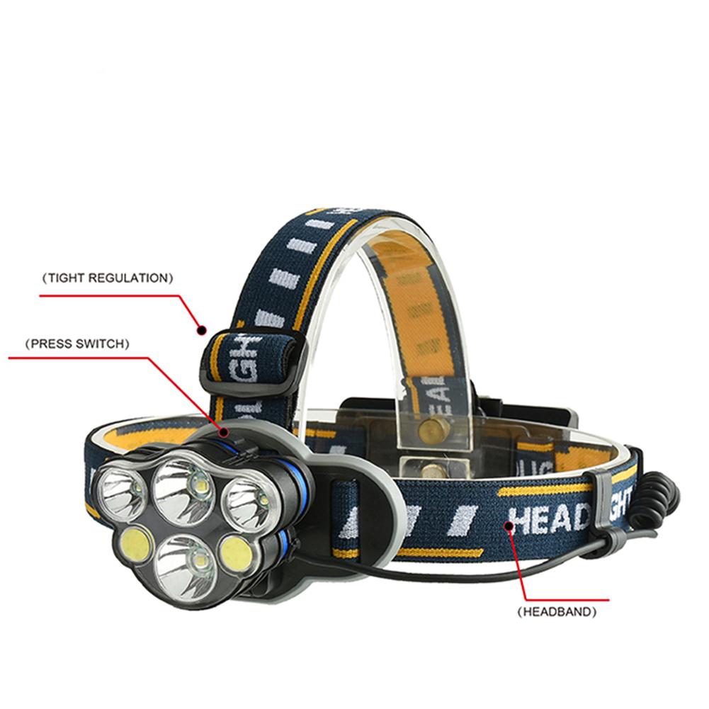 6-light USB Charging +COB LED Strong Light Headlamp Warning Light for Outdoor Activity