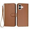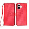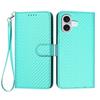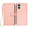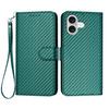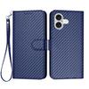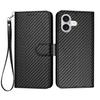 For iPhone 17 Wallet Case with Strap Carbon Fiber Texture Leather Mobile Cover