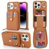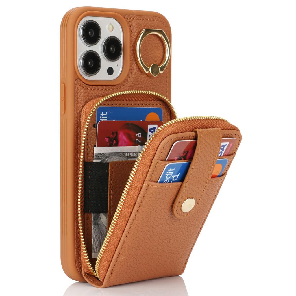 For iPhone 14 Pro Max Case with Zipper Pouch/Ring Kickstand/Strap Litchi Texture PU + TPU Phone Cover