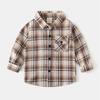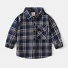 Children's Collared Shirt for Spring and Autumn, Boys' Brushed Plaid Long-Sleeve Shirt, Baby Boy's Square Collar Pure Cotton Casual Top