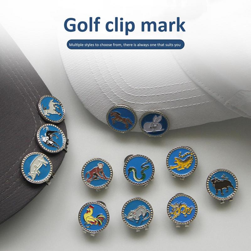 New Golf Ball Mark+Golf Hat Clip Zodiacs Design Magnetic Alloy Marker Golf Accessories Rat Ox Tiger Rabbit Dragon Snake Horse