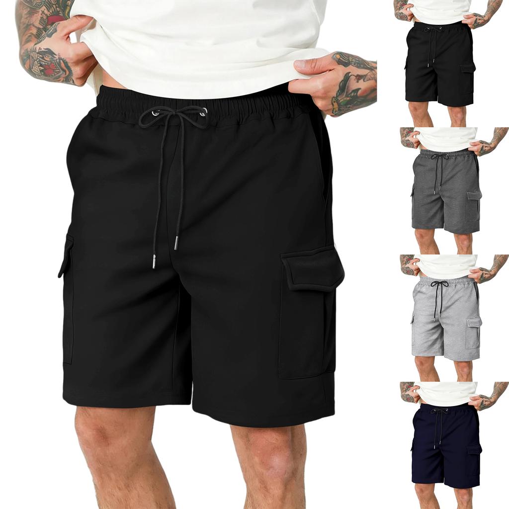 Men's Multi-pocket Cargo Shorts, Loose-fitting Casual Athletic Pants, Straight Leg, Five-point Pants