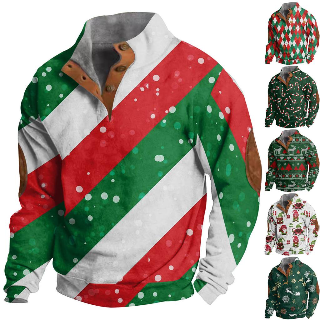 Men's Buttoned Sweatshirt With European And American /winter Printed Long Sleeved Sweatshirt