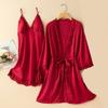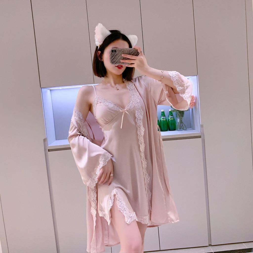 Long-sleeved Pajamas Women's Summer Ice Silk Thin Sleeping Dress Two-piece Set Spring and Autumn Sexy Pure Desire Wind Backless Loungewear