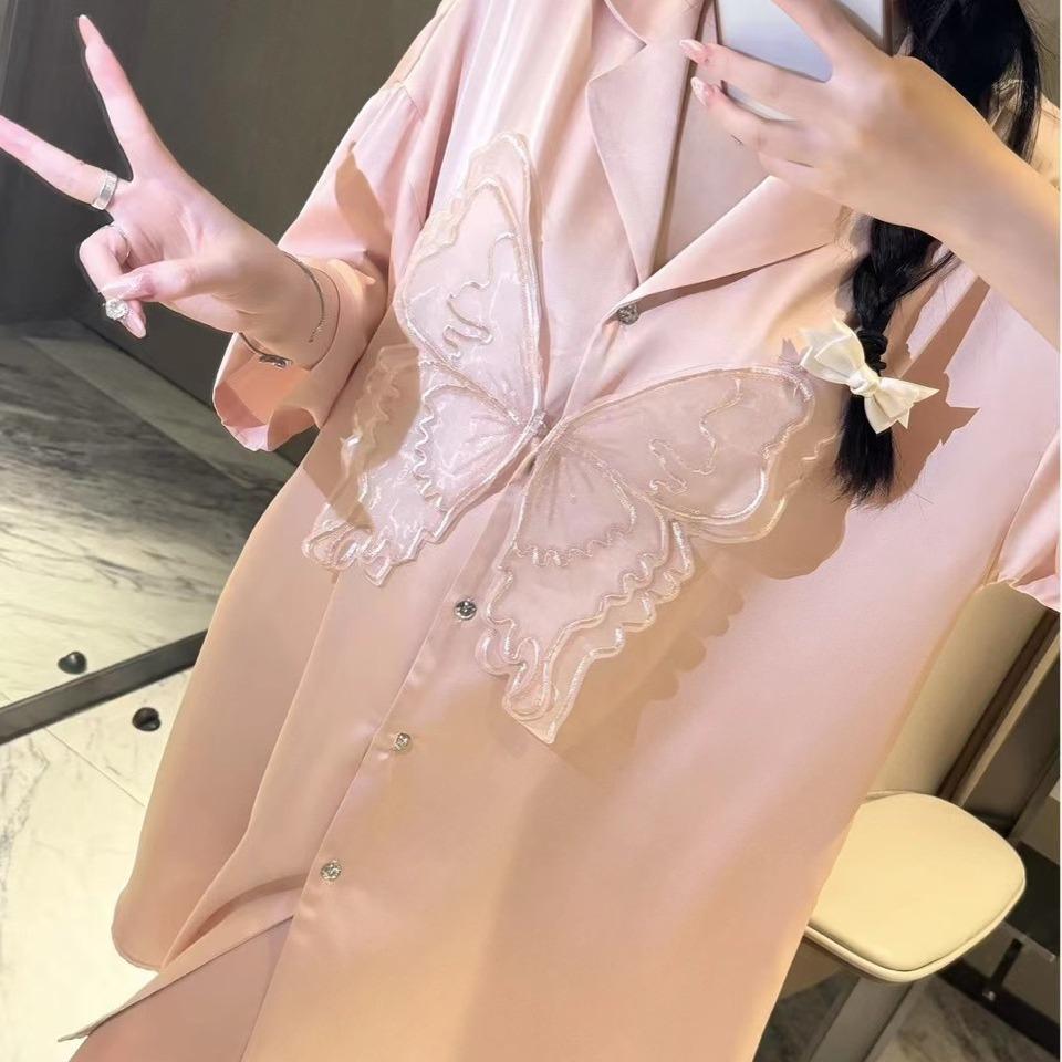 Sexy Pajamas Women's Summer Shirt Pajamas Summer Women's New Lace Short Sleeves Large Size Outer Wear Advanced Sense