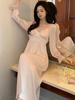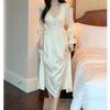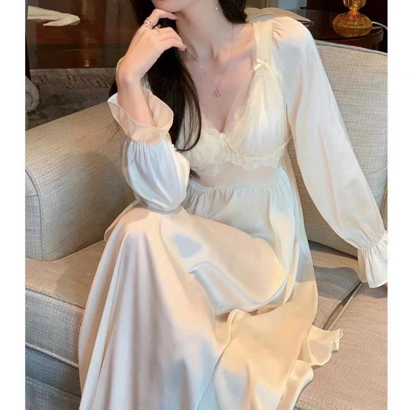 Spring and Summer Sexy Ice and Snow Silk Long Chest Pad Nightdress Women's Thin Sweet Lace Court Style Gentle Niche V-neck