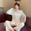 New Pajamas Women's Ice Silk Long-sleeved Suit Court Style Retro High-end Silk Can Be Worn Outside Loungewear