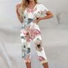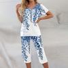 2 Piece Sets For Women Short Sleeve Top And Pants With Pockets Workout Soft Floral Print Sets