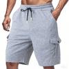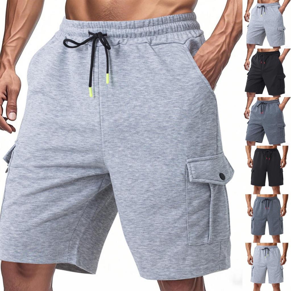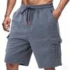 Men's Casual -color Sportswear Shorts, Men's Multi-pocket Drawstring Shorts