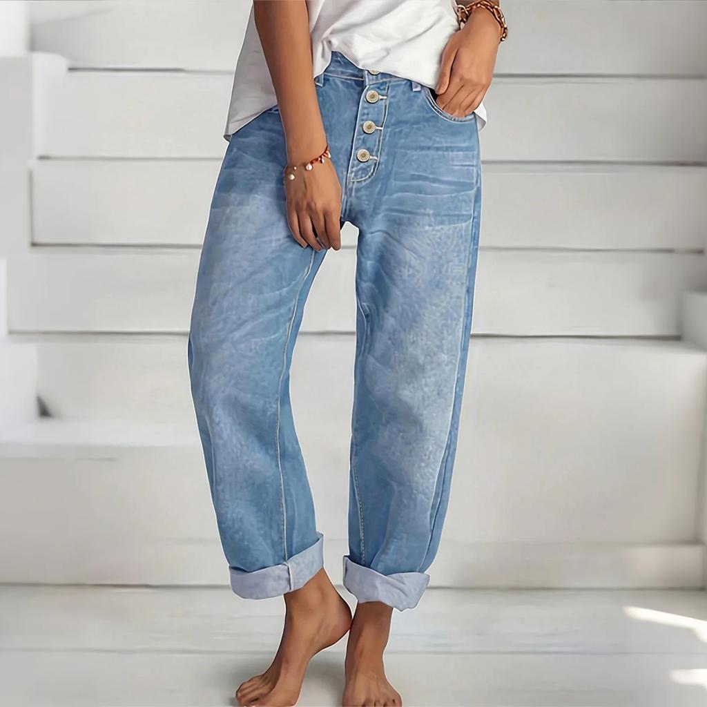 Women's High Waist Washed Women's Jeans Fashionable Versatile Straight Leg Pants