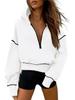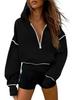 This stylish women's cropped hooded sweatshirt combines comfort with modern fashion, making it a must-have for your winter wardrobe. Featuring a distinctive tailor neckline and long sleeves, it offers a loose fit for ultimate comfort and style. Crafted from high-quality cotton, this hoodie includes a decorative pattern that adds a unique touch to its design. The half zip front allows for easy wear and versatility, making it a perfect choice for both casual outings and cozy days at home.