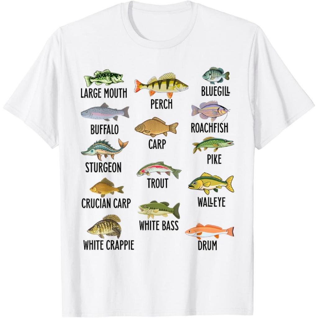 Types Of Fish Species Fishing Fisherman Anglers T-Shirt