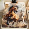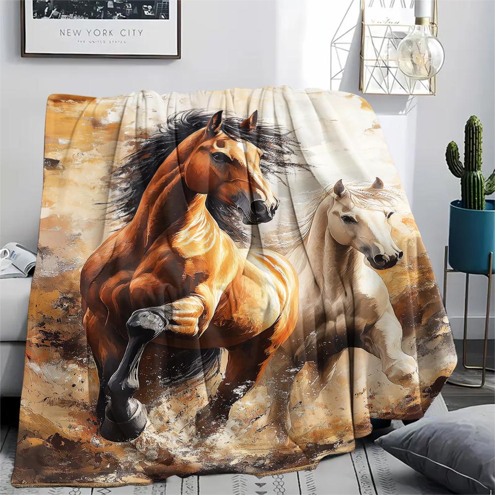 1Pc Horses Painting Print Flannel Blanket, High Quality Comfortable for All Seasons, Home Decor, Warmth and Comfort, Perfect for Christmas Gifts