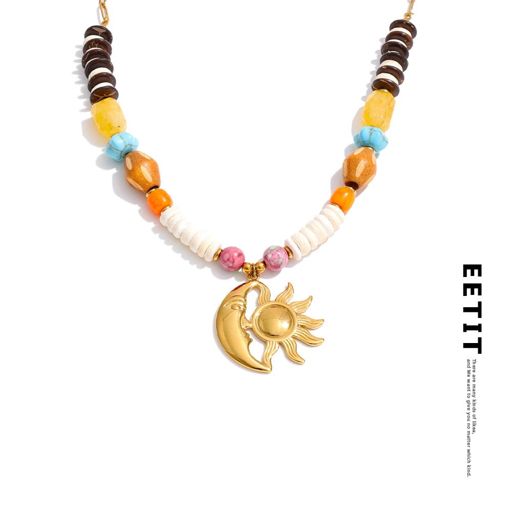 Eetit New Arrival Handmade Jewelry Natural Stone Resin Wood Beads Sun Moon Drop Necklace Stainless Steel Accessories Waterproof