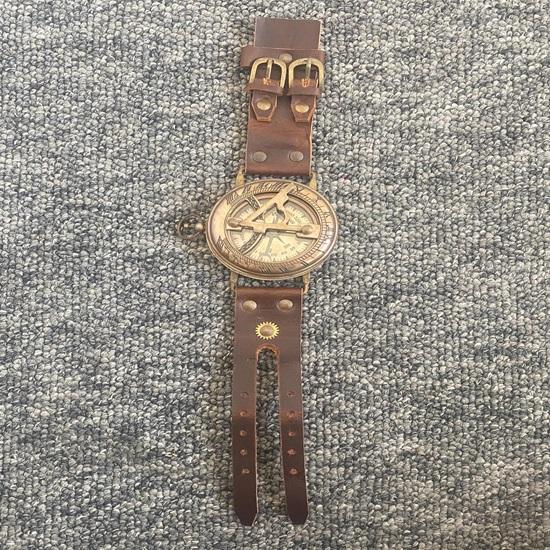 Crafted from solid brass with a beautifully finished leather wrist strap, this sundial compass watch is not just a timepiece—it’s a conversation starter and a timeless decorative accessory. The brass body gives it an antique maritime look, while the compass and sundial design reflect traditional navigation tools once used aboard ships.