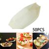 - 【Package】: Including 50pcs disposable boat plates for serving food items.