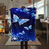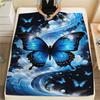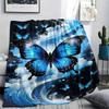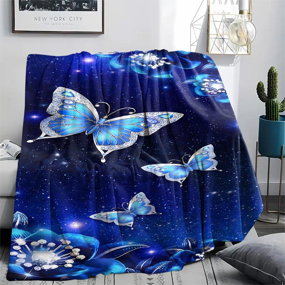 1Pc Blue Butterflies Print Flannel Blanket, High Quality Comfortable for All Seasons, Home Decor, Warmth and Comfort, Perfect for Christmas Gifts