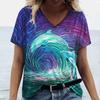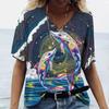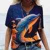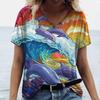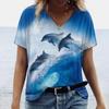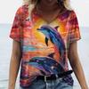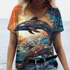 Women's Dolphin Print T-shirt V-neck Top Retro Aesthetic Clothing Oversized Funny Loose Fashion Novelty T-shirt
