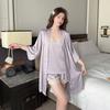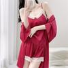 New Sexy Pajamas Women's Ice Ribbon Chest Pad Sling Three-piece Set of Pure Desire Silk Loungewear Can Be Worn Outside