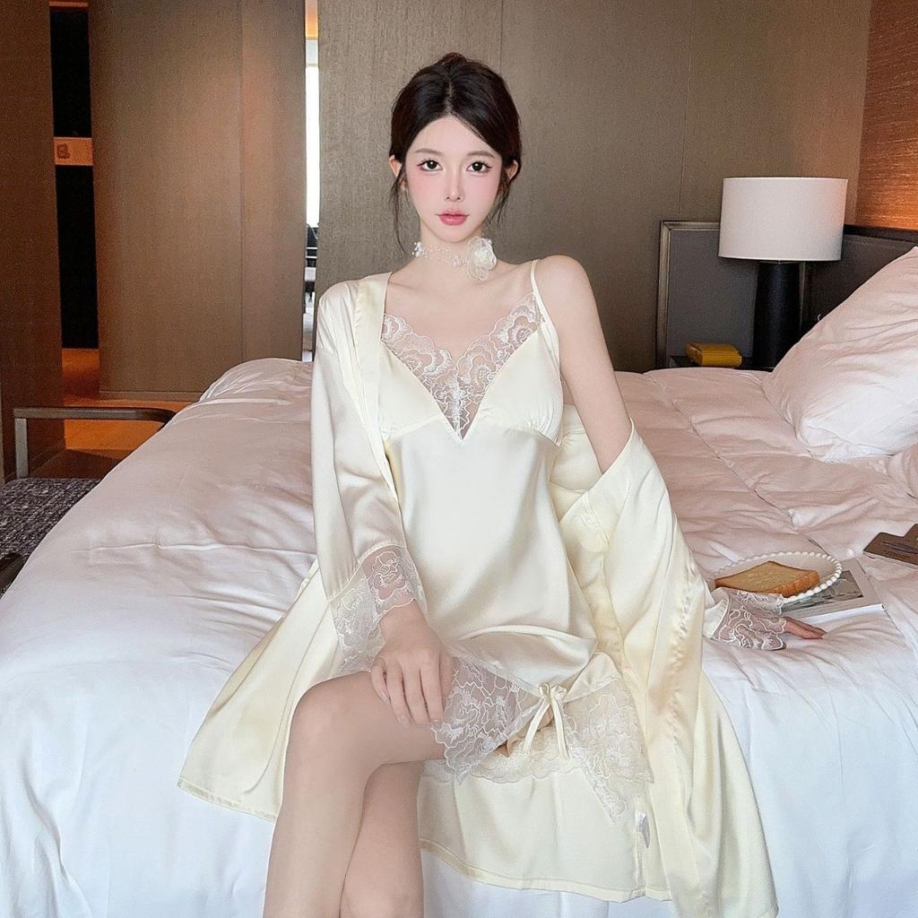 Sexy Pajamas Women's Ice Ribbon Chest Pad Pure Desire New Suspender Pajamas Two-piece Silk Loungewear