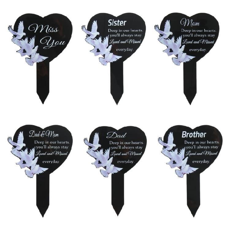 Remembrance Plaque Heart Shape Cemetery Memorials Gift Weatherproof Acrylic Engraved For Loved One Outdoor Decoration