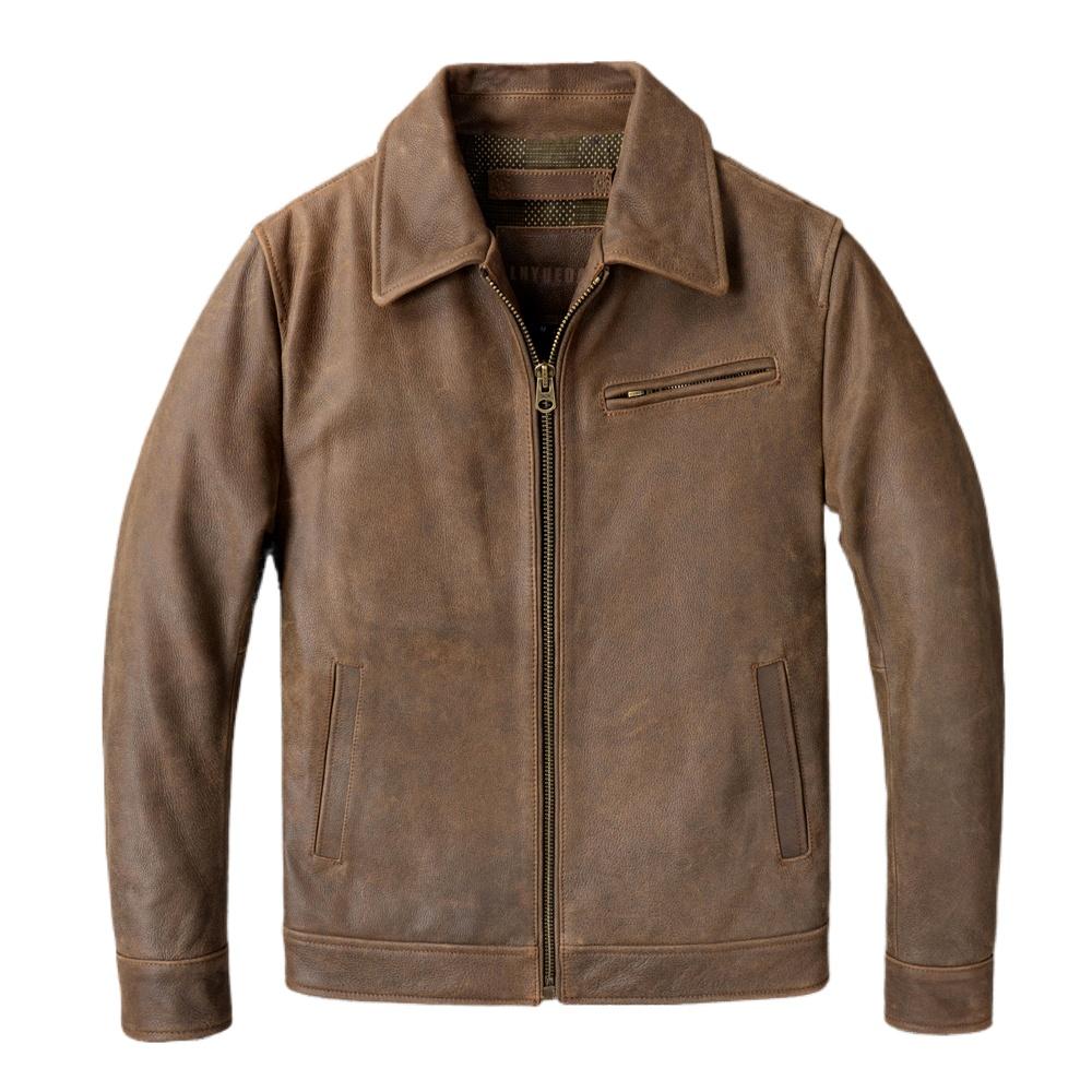 Classic 1930S Style Brown Uncoated Genuine Cow Men Leather Jacket Soft Slim Fit Men's Natural Cowhide Coat Autumn