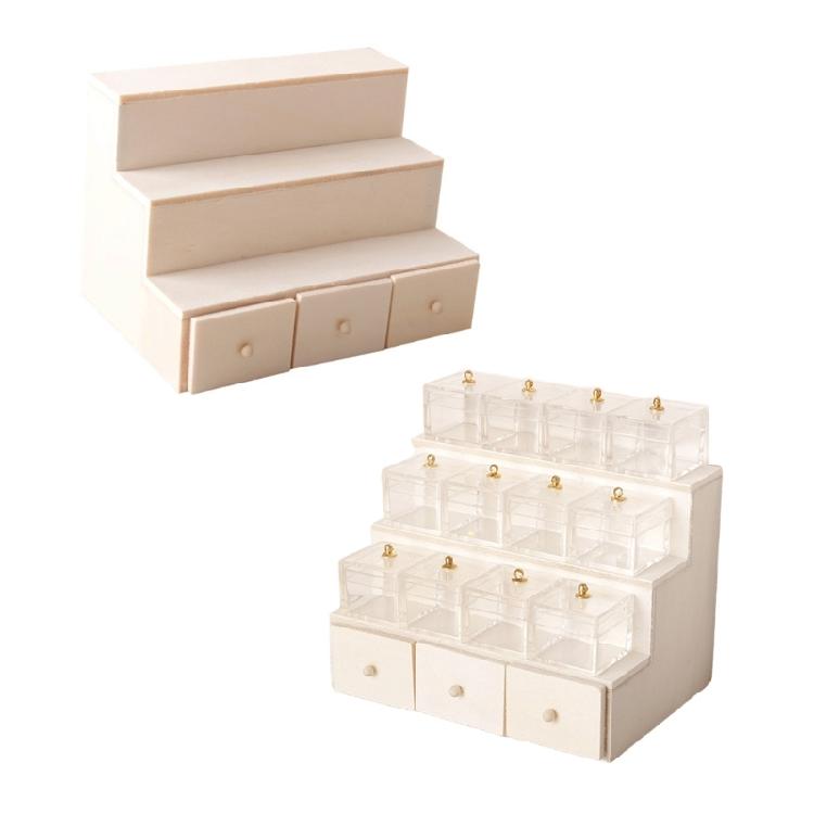 1:12 Scale Wood Tiered Display Rack Cabinet for Miniature Market and Exhibition Use Doll House Decoration Furniture