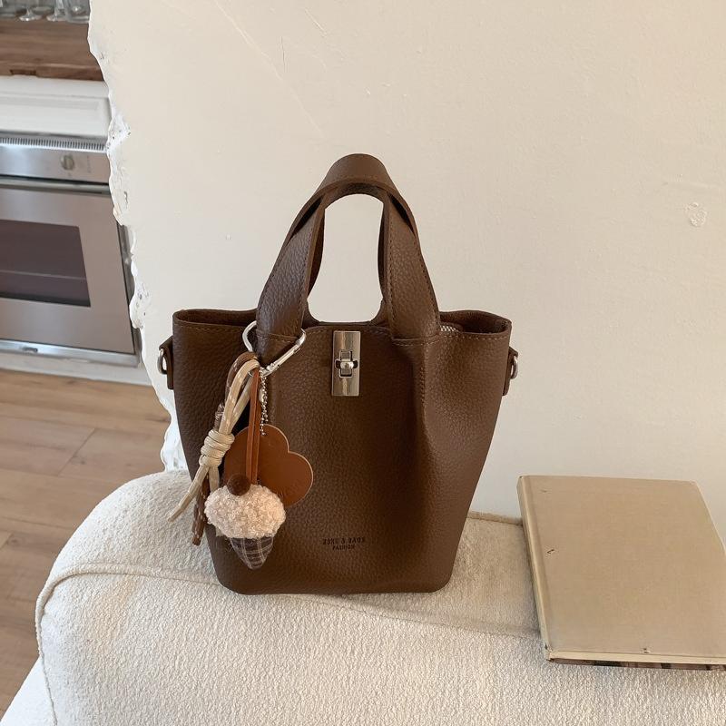 Single Shoulder Bag, Fashionable Handbag, High-end Bucket Bag, Women's Small Clutch Bag, Lychee Pattern Handbag