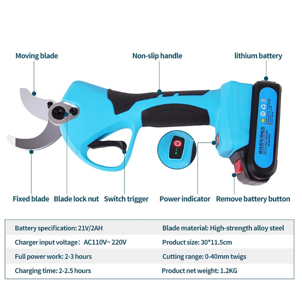 21V 2AH Professional Cordless Pruner 40MM Electric Pruner Battery Pruning Shear Garden Scissors Trees Secateurs Cutter Shears