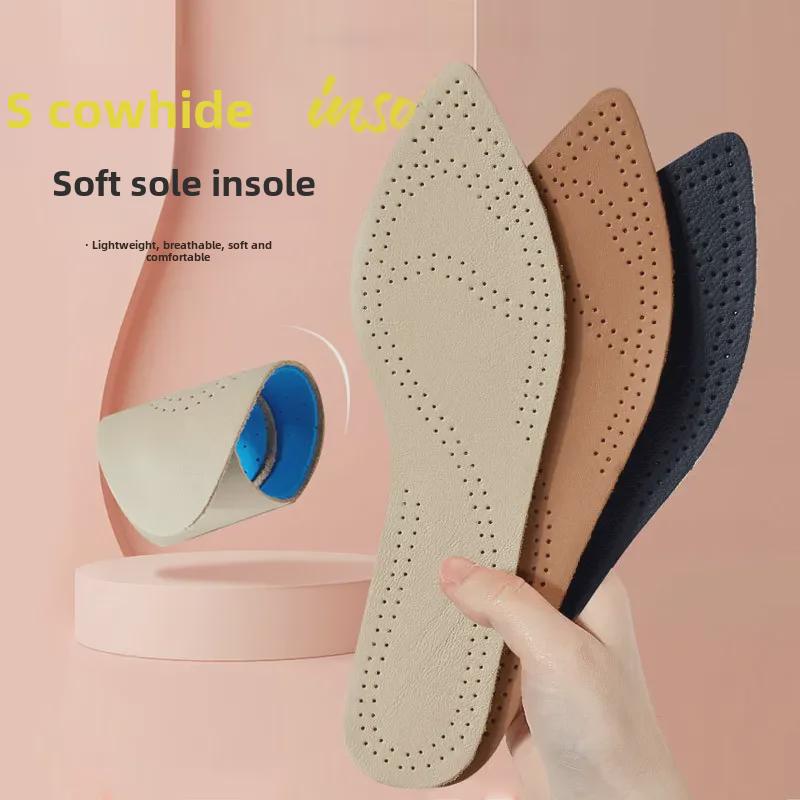 Women's Leather Deodorant High Heel Insoles Breathable, Sweat-Absorbent, Shock-Absorbing, Soft Cowhide for Pointed Toe Shoes