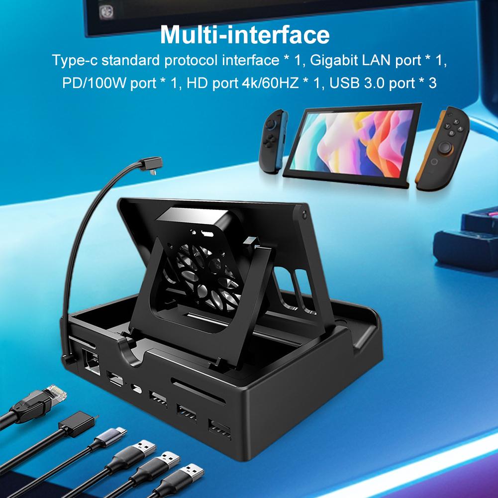 For Switch 2 TV Dock Station Charging Dock Base with Fan & 4K HDMI-compatible Gigabit Ethernet USB-C PD3.0 Charging for Switch 2